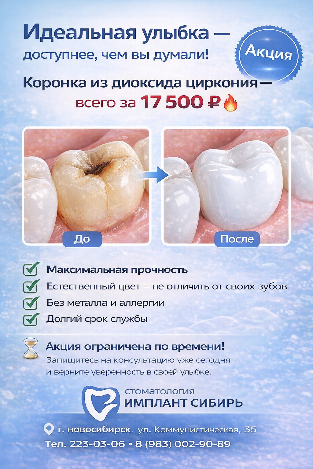 Акция! Коронка из диоксида циркония всего за 17500